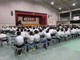 体育館では、3年生による英語のスピーチ、生徒会役員生徒による新しい制服のファッションショー、吹奏楽部の演奏が行われました。