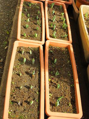 学校でもチューリップの栽培をしています。(一番下のプランターの写真です。)