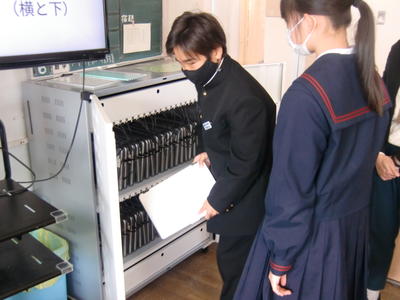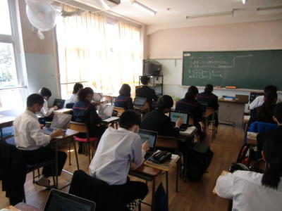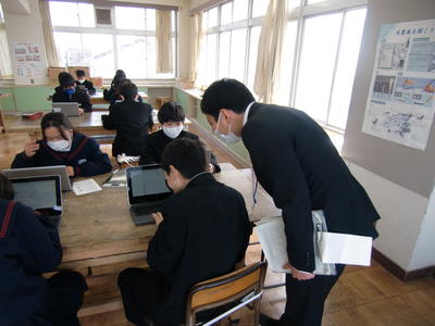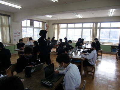 すべてが良い点だけではないと思いますが、生徒たちはしっかりと自分の意見を書き込んでいました。これからは、このような授業も多く見られるようになると思います。情報化社会に向けての教育のあり方を見た時間でした。