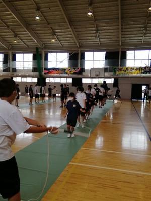 最終種目の「みんなでジャンプ」は、クラスの人数を半分にし、距離を開けての挑戦となりました。1年生から学年が上がるごとに回数が伸び、3年生の最高回数は76回という素晴らしい記録が出ました。
