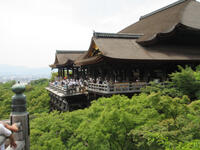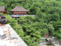 続いて清水寺です。「清水の舞台から飛び降りる」という慣用句のとおり、舞台の欄干からの眺めは京都を一望することができる高さがあることを実感しました。また、本堂や舞台を支える柱の麓から見上げると、逆の視点からその高さを改めて実感しました。さらにこれだけの建造物に釘が1本も使われていないのは驚きでした。