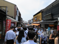 見学地の最後は三十三間堂でした。撮影禁止区域であるため、全長約120mの本堂の長さと1,001体の千手観音立像をビジュアルにお伝えできないのが残念ですが、長い回廊伝いにひたすら並ぶ観音像をゆっくりと歩きながら眺めていると、なんだか無心になれる気がしました。といっても私が悟りの境地に至るには程遠いでしょう。