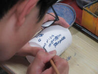 続いて参道の途中にある工房で、湯飲み茶碗の絵付け体験をしました。