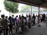 後半は部活動見学です。すでにやりたいことが決まっている児童もいるようですが、中学校生活の実態の一面を「見て学ぶ」ことがこの日のねらいであるため、すべての部をひととおり見てもらいました。生徒会本部役員の生徒が分担して小学生のグループを先導してくれました。
