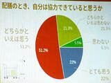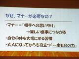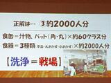 また、保健委員会の話題に関連して、二宮町学校給食センターの学校栄養技師さんからは給食センターの日常業務(特に給食後の洗浄作業)についてもお話しいただきました。給食ではお箸やスプーンのほかに、お皿など3種類の食器を使っています。二宮町内5校の小中学校では毎日、約2,000食が供給されているので、お皿の類だけでも約6,000個洗っていることになります。機械洗浄の工程が含まれているものの、職員による手洗いが必ずあるので、まさに「洗浄」作業の場が戦場」だという状況に驚くとともに、学校給食が日頃お目にかからない職員の方々のたいへんなご苦労に支えられていることを実感しました。