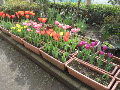 三寒四温もいよいよ終わりでしょうか。年末に植えたチューリップも満開です。